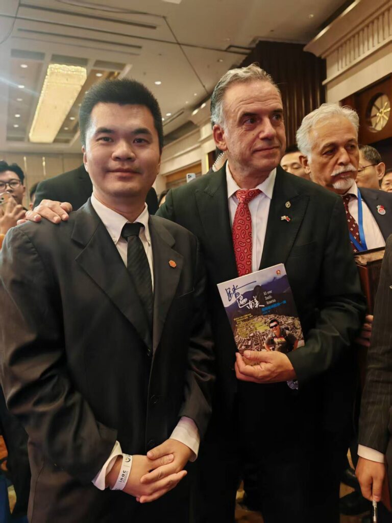 当晚,我出席了总统举办的招待酒会,并向总统赠送了自己撰写的一本书《踏遍南美》。总统对我在乌拉圭的经历给予了高度评价,并欣然接受了我在其办公室进行的一次专访。对我个人而言,这是一次具有象征意义的时刻——多年跨文化、跨制度工作的积累,在这一刻被正式看见。