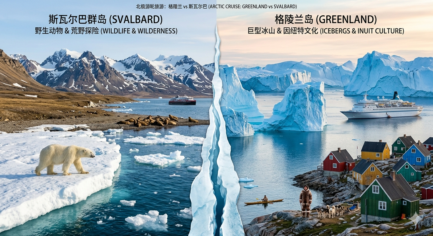 如果你既想要动物又想要景观: 市场上有一种“双岛航线”(斯瓦尔巴 + 格陵兰),通常耗时15天以上。这属于“成年人全都要”的选择,虽然价格不菲,但能一次性打卡所有极地精粹。