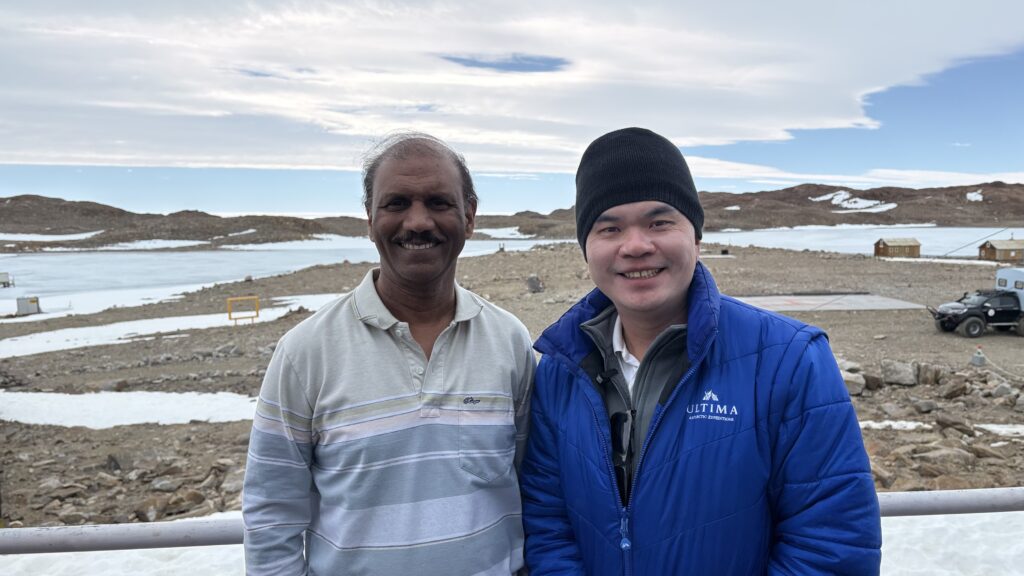 迎接我们的是迈特里站的站长(Station Director)拉温德拉·莫雷(Ravindra More)先生。莫雷先生的热情更是瞬间驱散了极地的寒意。他面带微笑,眼神中透着一种长期在极端环境下工作所特有的坚毅与宁静。作为这里的“掌舵人”,莫雷先生不仅要负责科考站的日常运营,还要确保所有队员在恶劣天气下的安全。
