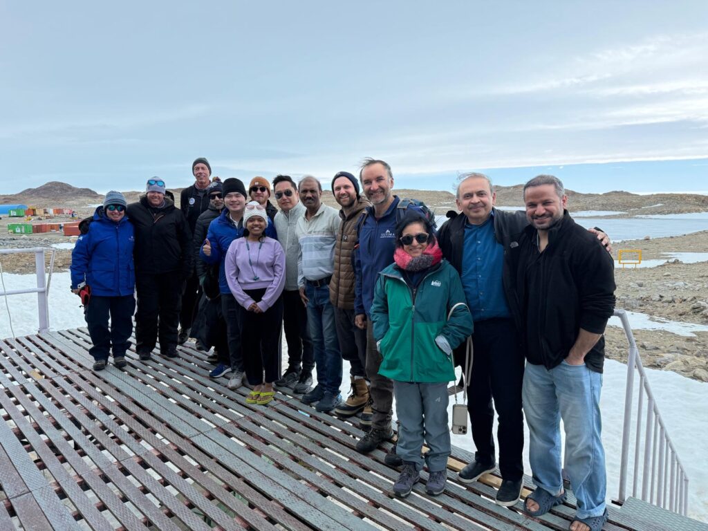 我们一行人与印度科考站工作人员合影。Sandeep夫妇右二和三。